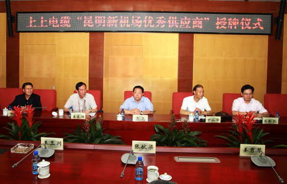 7月10日,昆明新機場建設指揮部召開優(yōu)秀供應商授牌大會,昆明新機場建設指揮部指揮長吳凡、副指揮長姜良閩、上上集團董事長、總經理丁山華、副總經理高勤凱等領導出席會議。會上,昆明新機場建設指揮部授予江蘇上上電纜集團優(yōu)秀供應商獎牌,對上上集團在昆明新機場建設中所作出的貢獻表示感謝。